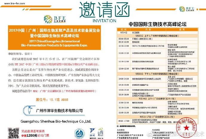 廣州深華誠(chéng)邀您參加2017中國(guó)國(guó)際生物技術(shù)高峰論壇